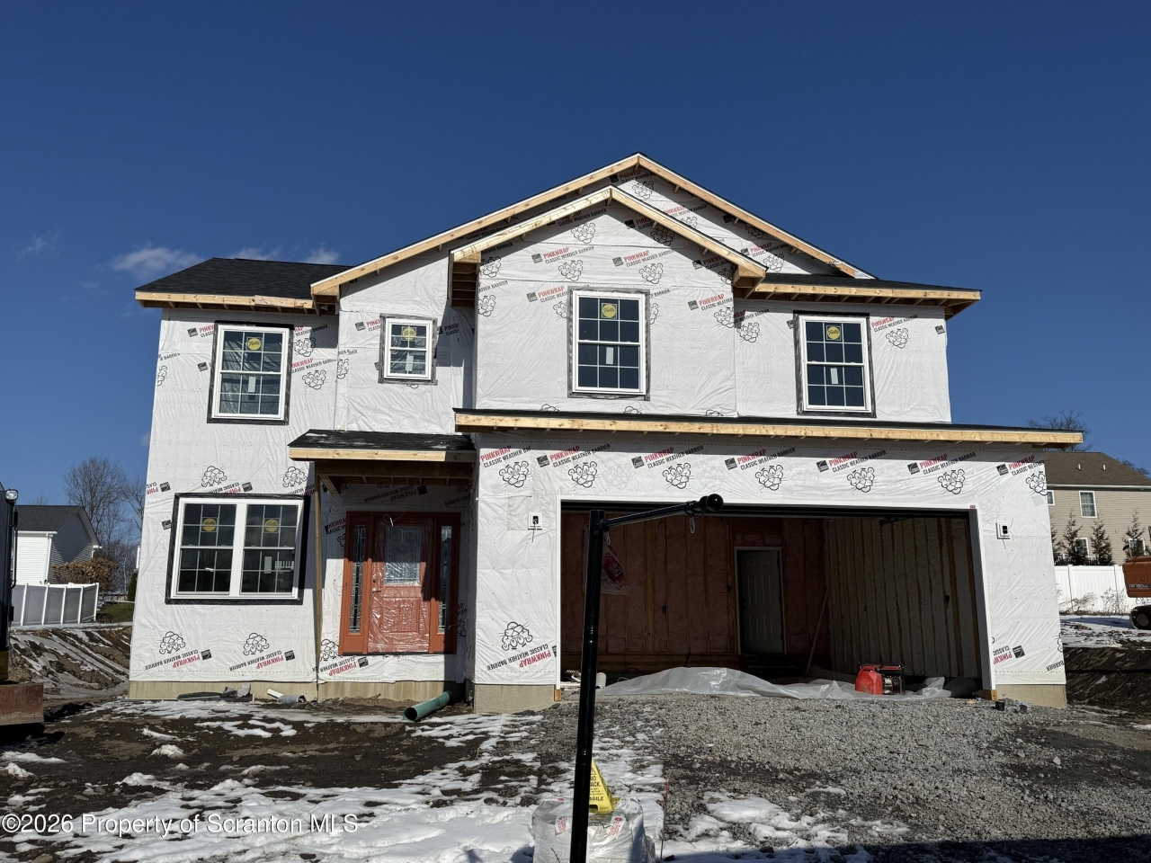 This exceptional new-construction, two-story residence offers four bedrooms and three-and-a-half baths. The open-concept main level seamlessly connects the kitchen, living, and dining areas, creating a light-filled, welcoming space ideal for both everyday living and entertaining. A full bathroom, mudroom, and direct access from the two-car garage complete the first floor. All information is approximate not warranted or guaranteed.Upstairs, you'll find four spacious bedrooms, each with walk in closets, 2 full baths, and a dedicated laundry room. The expansive primary suite is a true retreat, featuring a generously sized bedroom, an impressive 14' x 8' walk-in closet, and a luxurious en-suite bath.The finished lower level provides additional living space with a family room and half bath--perfect for relaxing or hosting guests. High-end finishes include custom shaker-style cabinetry and granite countertops throughout. Notable builder upgrades include a concrete driveway and front sidewalk, spray-foam insulation, attic air exchanger, and forced hot-air natural gas heating. This premium builder is recognized for superior craftsmanship, with upgraded framing and beams throughout the home.Ideally situated near Glenmaura National Golf Club and just minutes from Montage Mountain Ski Resort, residents enjoy easy access to skiing, golfing,shopping, and a diverse selection of dining options--offering both convenience and lifestyle appeal.